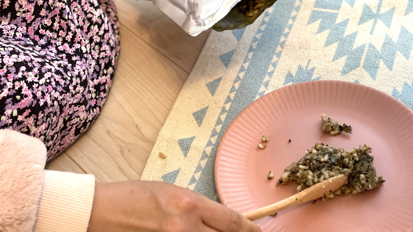 ラップで小さなおにぎりを作って、お散歩のおやつにどうぞ。